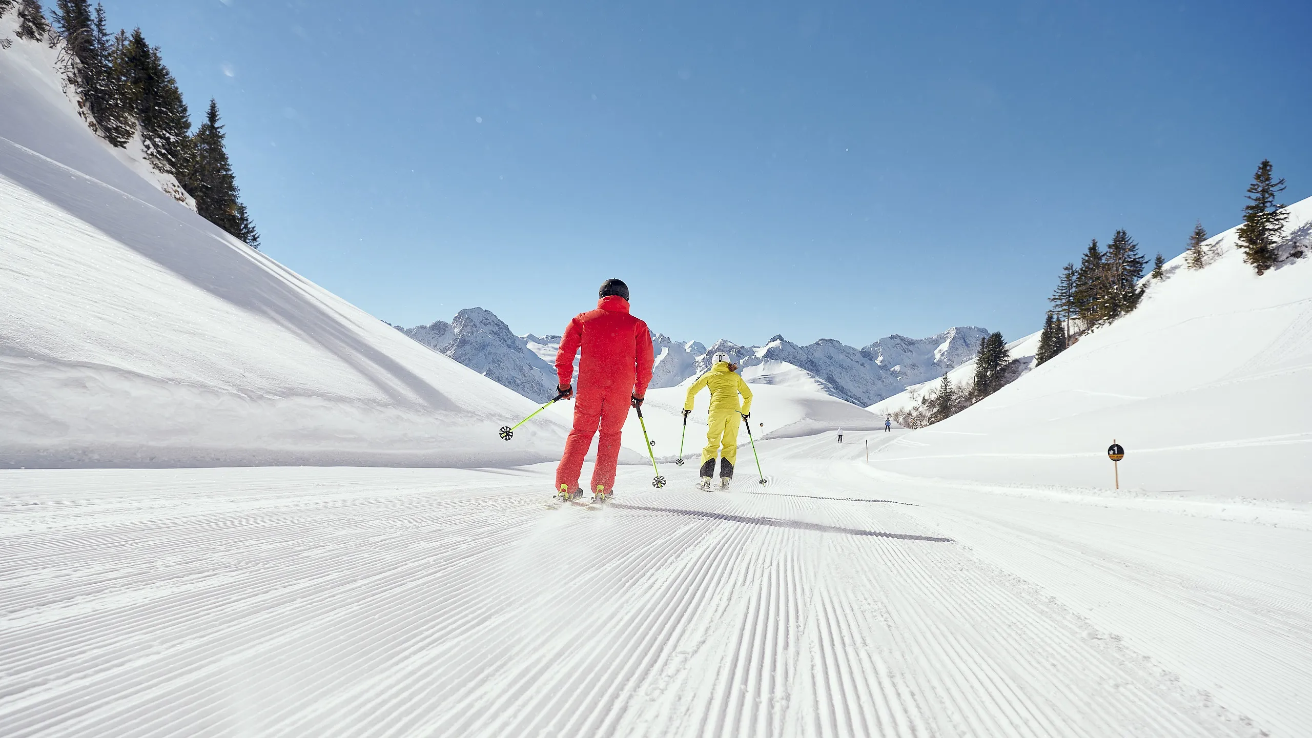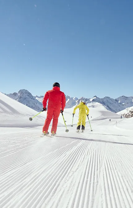 Zwischen Warth, Lech, Schröcken, Mellau und Damüls liegt Ihr Winterparadies am Diedamskopf. Mit Blick auf 300 Gipfel der umliegenden Bergwelt bis hin zum Bodensee können Sie auf 40 bestens gepflegten Pistenkilometer im Naturschnee carven. Vier Restaurants mit Panoramablick und Sonnenterrassen laden zum gemütlichen Genuss österreichischer Spezialitäten ein, bevor es spektakulärer per Talabfahrt auf 10 Kilometern Länge über 1.200 Höhenmeter non-stop vom Gipfel bis ins Tal geht.