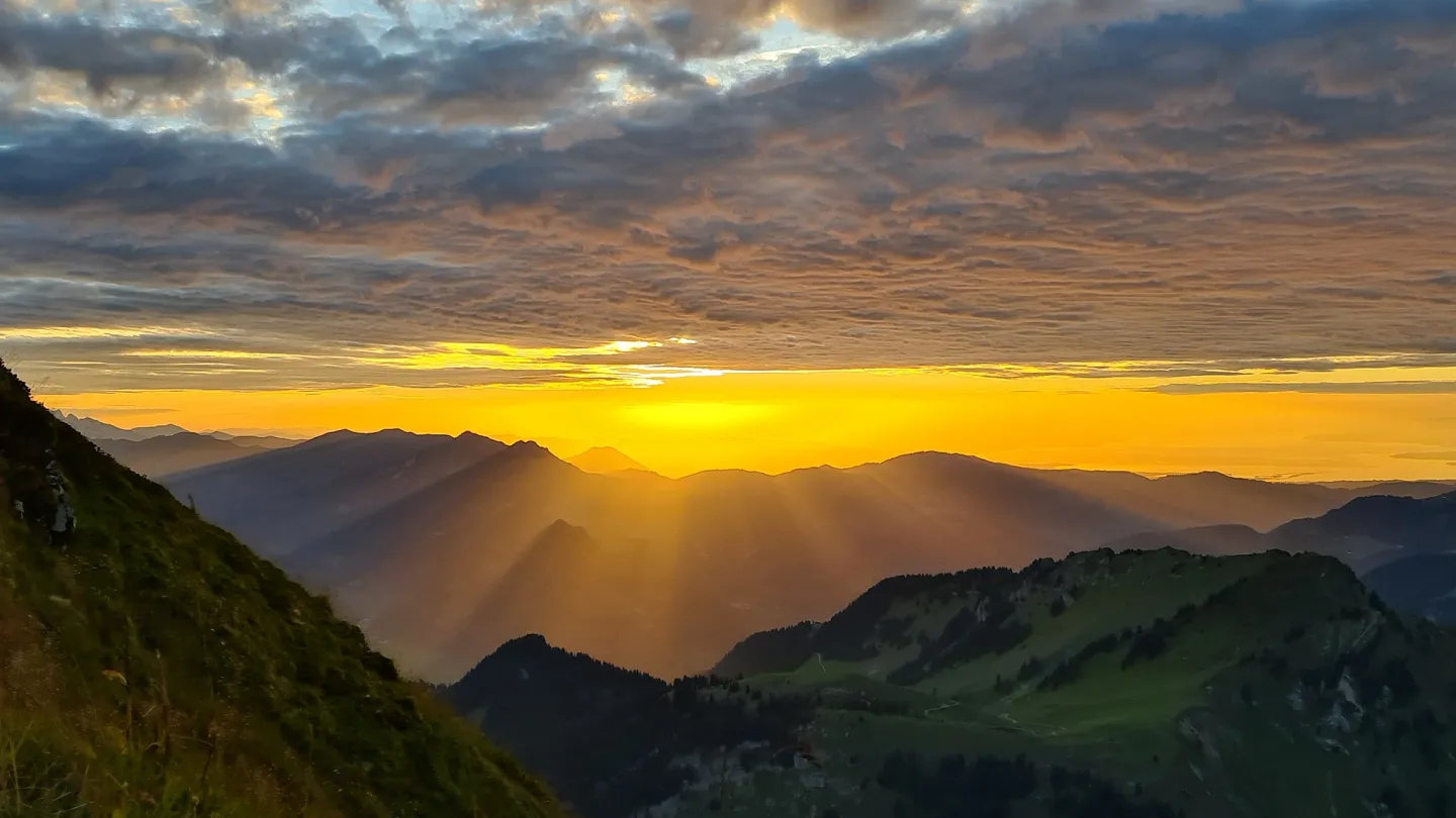 Wenn die Sonne im Bodensee versinkt, wird es ganz still am Diedamskopf-Gipfel. Es ist ein Hochgefühl dieses Naturschauspiel hautnah mitzuerleben.