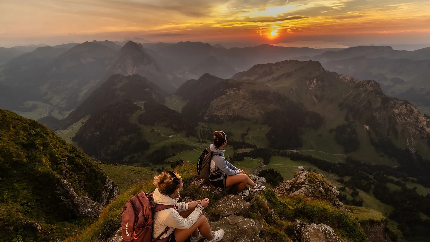 Die Berge und Täler von oben zu betrachten grenzt an Meditation. Auf jeden Fall hat der Diedamskopf im Sommer eine entspannende Wirkung aufs Gemüt und schafft im Kopf wieder mehr Platz für die wichtigen Dinge. Zum Beispiel für die Fragen: Wohin wandern wir als nächstes? Oder ist etwa schon Zeit für einen Spritzer auf der Panoramaterrasse?